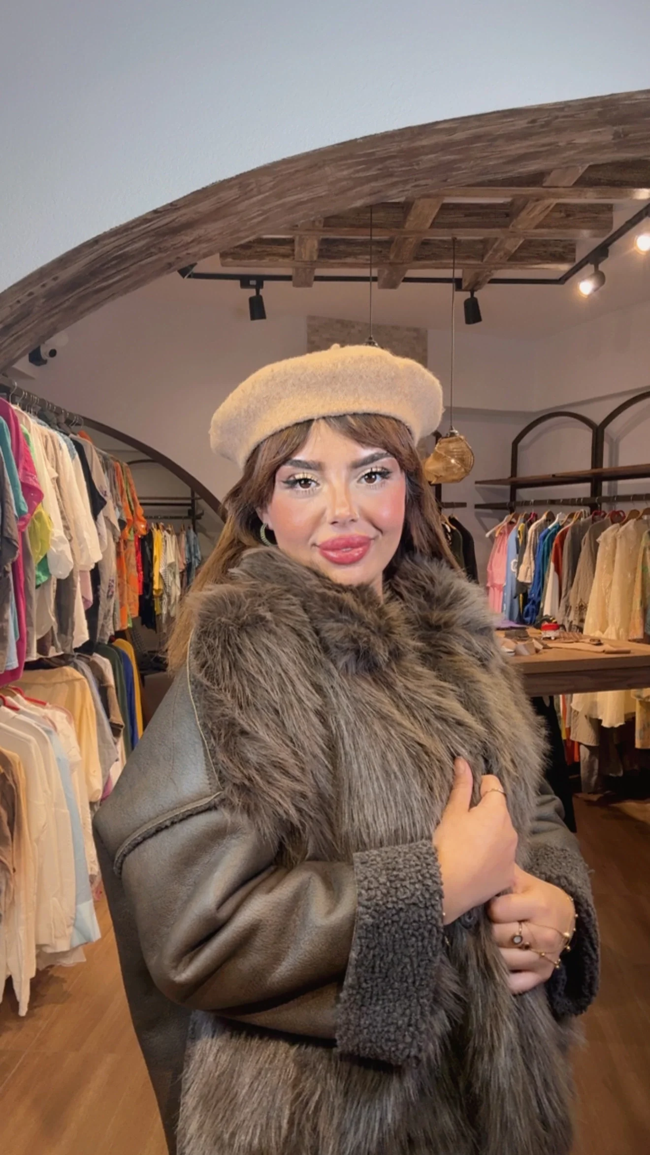 Esk Kürklü Kaban Krem