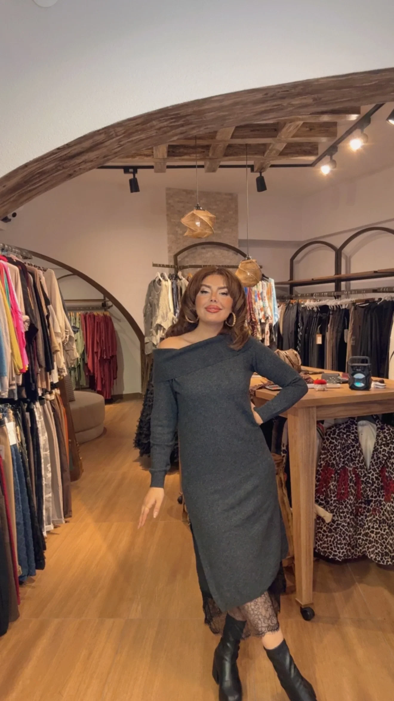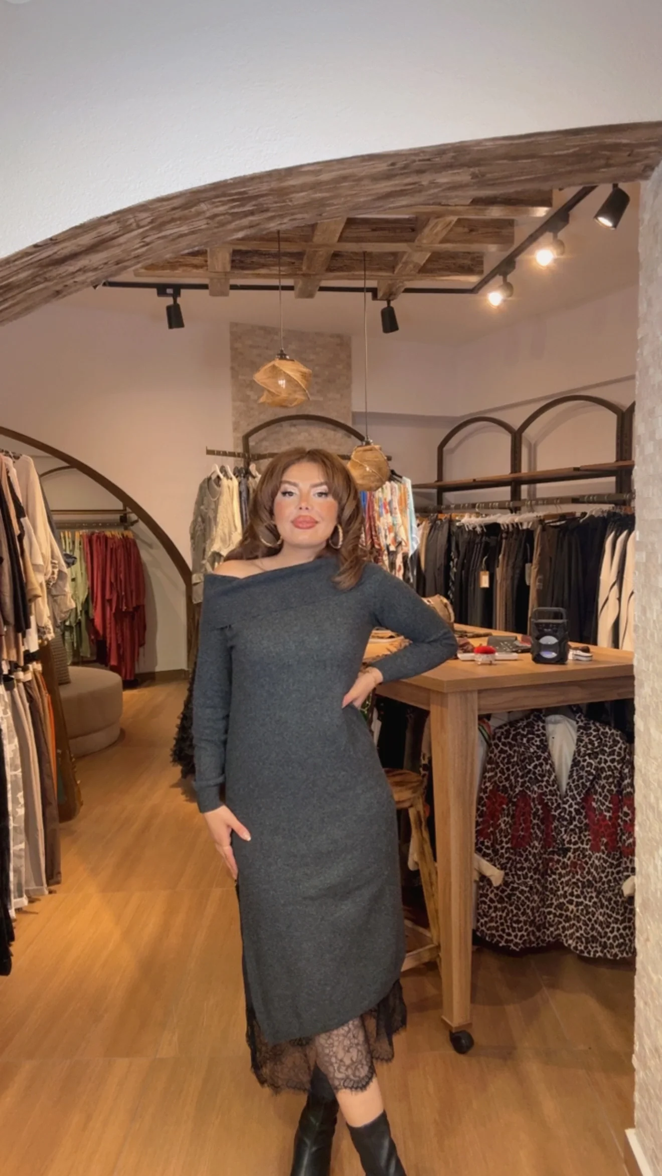 SERİ KAYIK YAKA TÜTÜ ETEKLİ ELBİSE